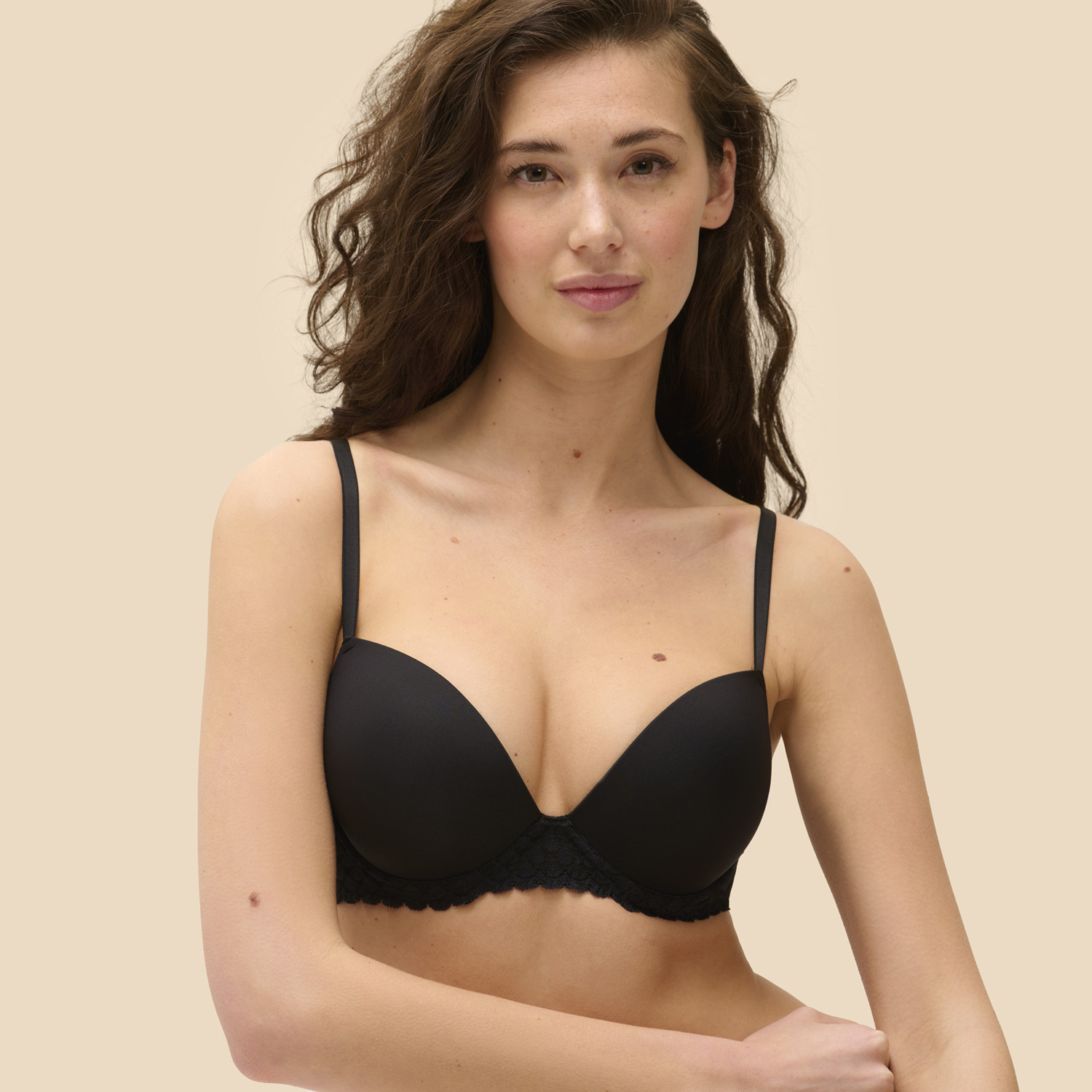 - Formowane miseczki gwarantujące gładki, niewidoczny wygląd pod ubraniem.