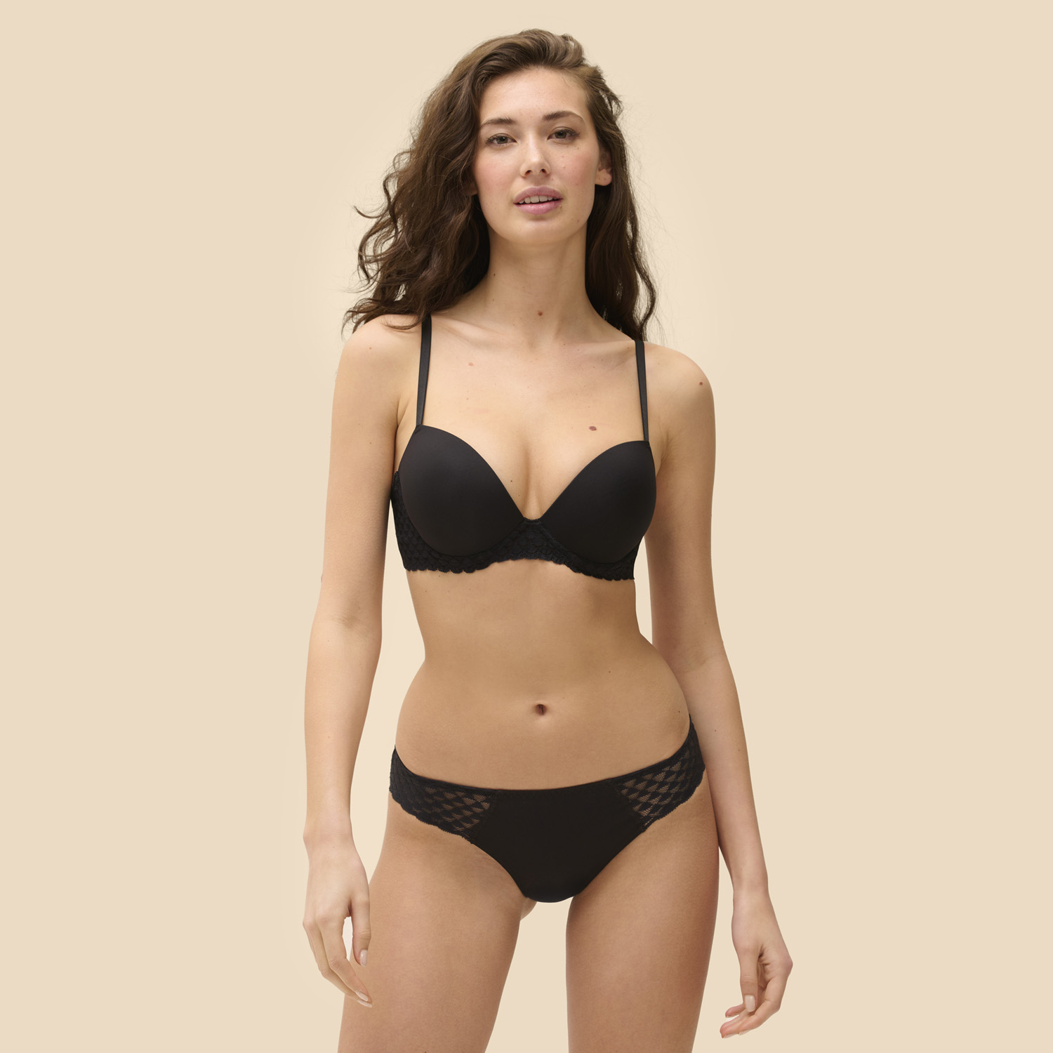 Wyrafinowana harmonia kobiecości i techniki. Ta ekskluzywna linia łączy zaawansowaną dzianinę modelującą z subtelną, reaktywną francuską koronką. Materiał delikatnie rzeźbi sylwetkę, podkreślając jej naturalne krągłości i nadając jej zmysłową lekkość. Każdy detal został zaprojektowany z myślą o doskonałym komforcie i elegancji – dla kobiety, która pragnie połączyć techniczny kunszt, nowoczesność i ponadczasowy urok.